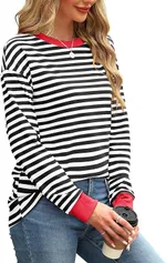 Color Contrast Loose Round Neck Striped Long