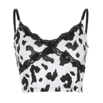 Girly Stitching Lace Trim Short Sling Top - Black White