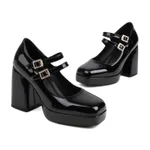 Female Square Toe Mary Jane Shoes - Black