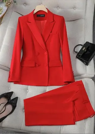 Office Formal Pants Suit - Red 2