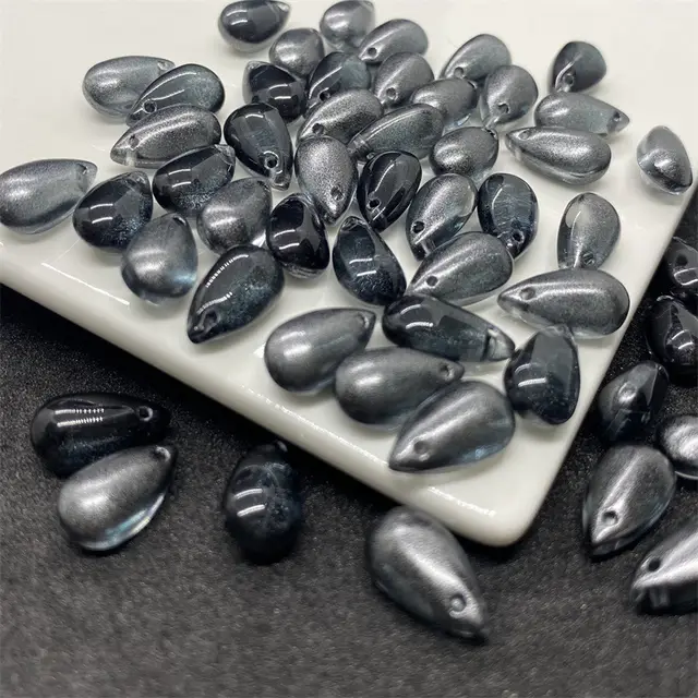 Personality Diy Ornament Accessories Water Drop Beads - Black Silver