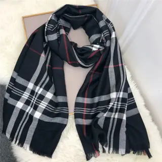 Plaid Cashmere Shawl Dual-use Scarf - Black