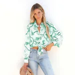 Printed Long Sleeve Cardigan Single Breasted Shirt - Green