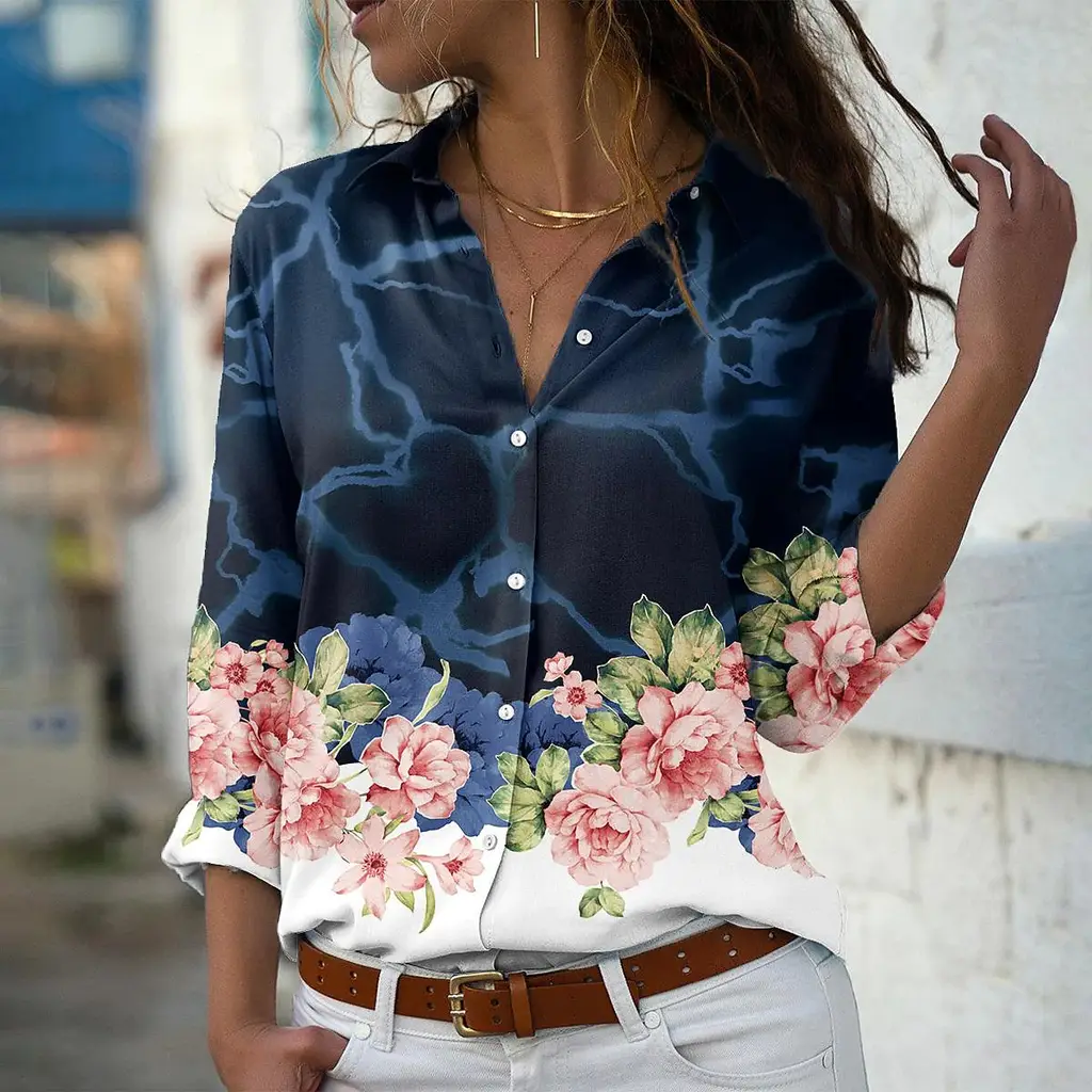Printing Lapel Long Sleeve Shirt For - Cscx7