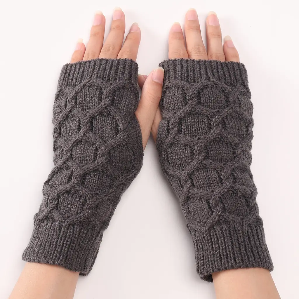 Short Knitted Wool Warm Half Finger Gloves - Dark Grey