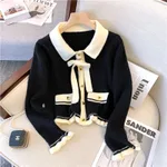 Small Short Classic Style Knitted Cropped Sweater Coat - Black