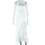 Solid Color Diagonal Collar Exposed Shoulder Sleeveless Split Dress -