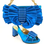 Suit Fish Mouth Pu Hollow High Heels And Bow Clutch Bag - Blue