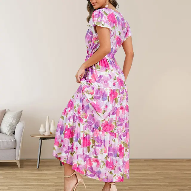 Product information: Pattern: plants and flowers Skirt type: A- line skirt Color: wine red, green, purple Waist Type: Mid waist Size: S,M,L,XL,XXL Style type: temperament commute Combination form: Single piece Skirt length: long skirt Popular elements: lace-up Style: pullover Fabric name: Polyester Sleeve type: regular sleeve Main fabric composition: Polyester (polyester fiber) Size: Note: 1. Asian sizes are 1 to 2 sizes smaller than European and American people. Choose the larger size if your size between two sizes. differences due to . 2. Please check the size chart carefully before you buy the item, if you don't know how to choose size, please contact our customer service. 3.As you know, the different computers display colors differently, the color of the actual item may vary slightly from the following images. Packing list: Dress*1pcs Product Image: