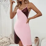 Sequin Stitching Dress Sexy Sling Nightdress - Pink