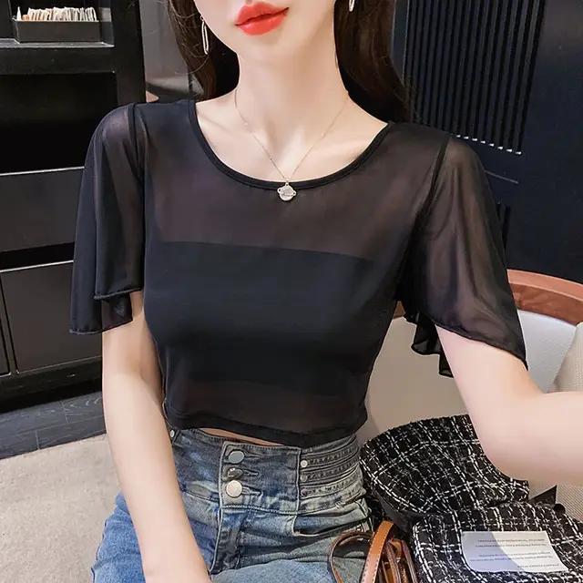 All-match Ultra-thin Mesh Base Blouse For - Black