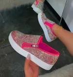 Specification: Popular elements: rhinestones, sequins Toe shape: round head Upper material: canvas Color: pink, gold, silver Sole Material: Rubber Inside material: cloth Upper height: low to help Heel shape: thick bottom Sole craft: viscose shoes Wearing style: sleeve/overshoes Insole material: PU Size: 35,36,37,38,39,40,41,42,43 Package Content: 1 pair x shoes