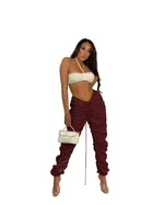 Solid Color Memory Fabric Pleated Drawstring Sports Pants - Wine