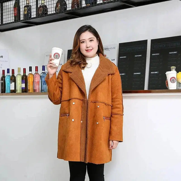 Fattening and Cashmere Coat Loose Medium Length Cotton