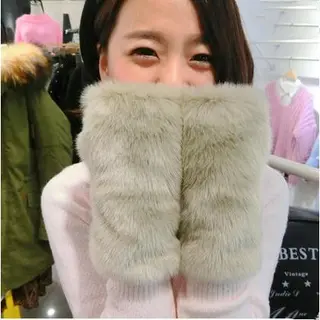 Faux Fur Half-finger Gloves And Winter - Khaki