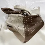 Product information: Fabric name: Polyester Color: beige leopard print, Blackboard zebra stripes, coffee zebra stripes, black and white plaid, caramel grid, beige polka dot, navy blue houndstooth, coffee Khaki Paisley, black and white polka dot Main fabric composition: Polyester (polyester fiber) Suitable season: Summer Style: small square towel Packing list: Scarf x1pc Product Image: