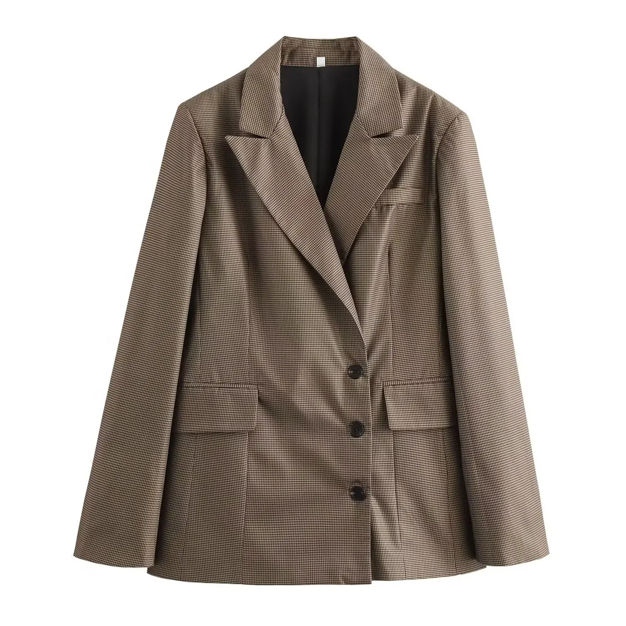 Female Loose And Khaki Plaid Mid-length Suit Coat