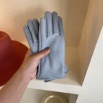 Five Finger Pu Leather Gloves For Cycling - Light Blue