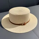 Flat Straw Hat Summer Seaside Uv Protection - Beige