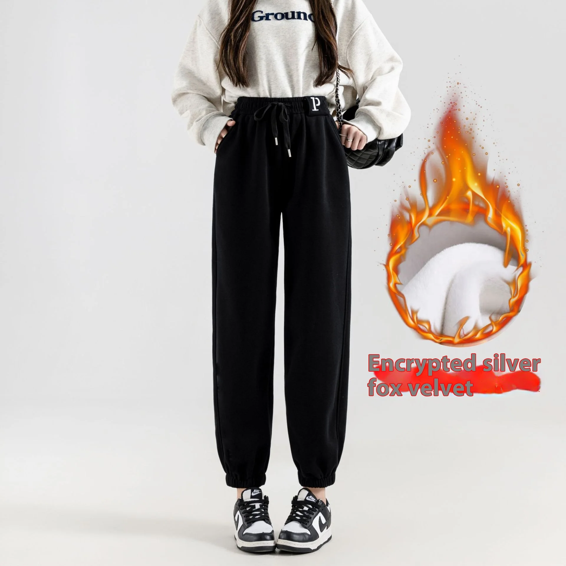 Product information: Thickness: super thick Color: Black Silver Fox velvet, dark coffee Silver Fox velvet, lemon yellow Silver Fox velvet, dark red silver fox velvet, light gray Silver Fox Velvet Main fabric composition: Cotton Size: M [80-100], L [100-115], XL [115-135], 2XL [135-155]] Applicable Gender: Female Style type: Japanese and Korean casual Pants type: loose type Popular elements: Pocket Note: 1. Asian sizes are 1 to 2 sizes smaller than European and American people. Choose the larger size if your size between two sizes. differences due to . 2. Please check the size chart carefully before you buy the item, if you don't know how to choose size, please contact our customer service. 3.As you know, the different computers display colors differently, the color of the actual item may vary slightly from the following images. Packing list: Pants * 1 Product Image: