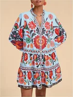 Floral Print Short Bohemian Beach Long Sleeve Button-down Flowy