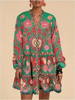 Floral Print Short Bohemian Beach Long Sleeve Button-down Flowy