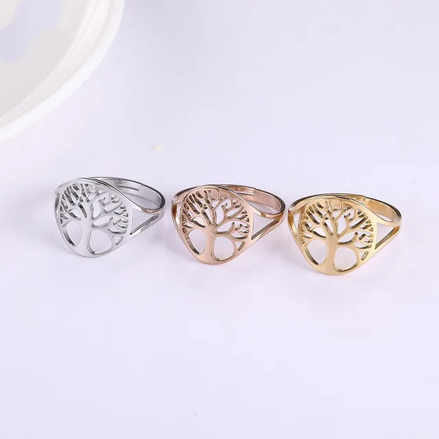 Product information: Product name: Tree of Life Ring Material: stainless steel 304 Size: Adjustable opening Weight: 1.38g Color: steel color, gold, rose gold Polishing: Hand-made mirror polishing, corners, holes, and dead corners are polished to be bright and round Electroplating: Vacuum plating 18K gold in the furnace, with bright colors and long-lasting color retention