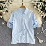 French Style Shirt Design Three-dimensional Flower Short Sleeve - Blue
