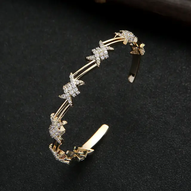 Product information: Color: platinum, champagne gold Applicable occasions for gifts: travel commemoration Style: Women's Material: Copper Popular elements: Snowflake, five-pointed star, Ice Flower Packing list: Women's bracelet X1pcs Product Image: