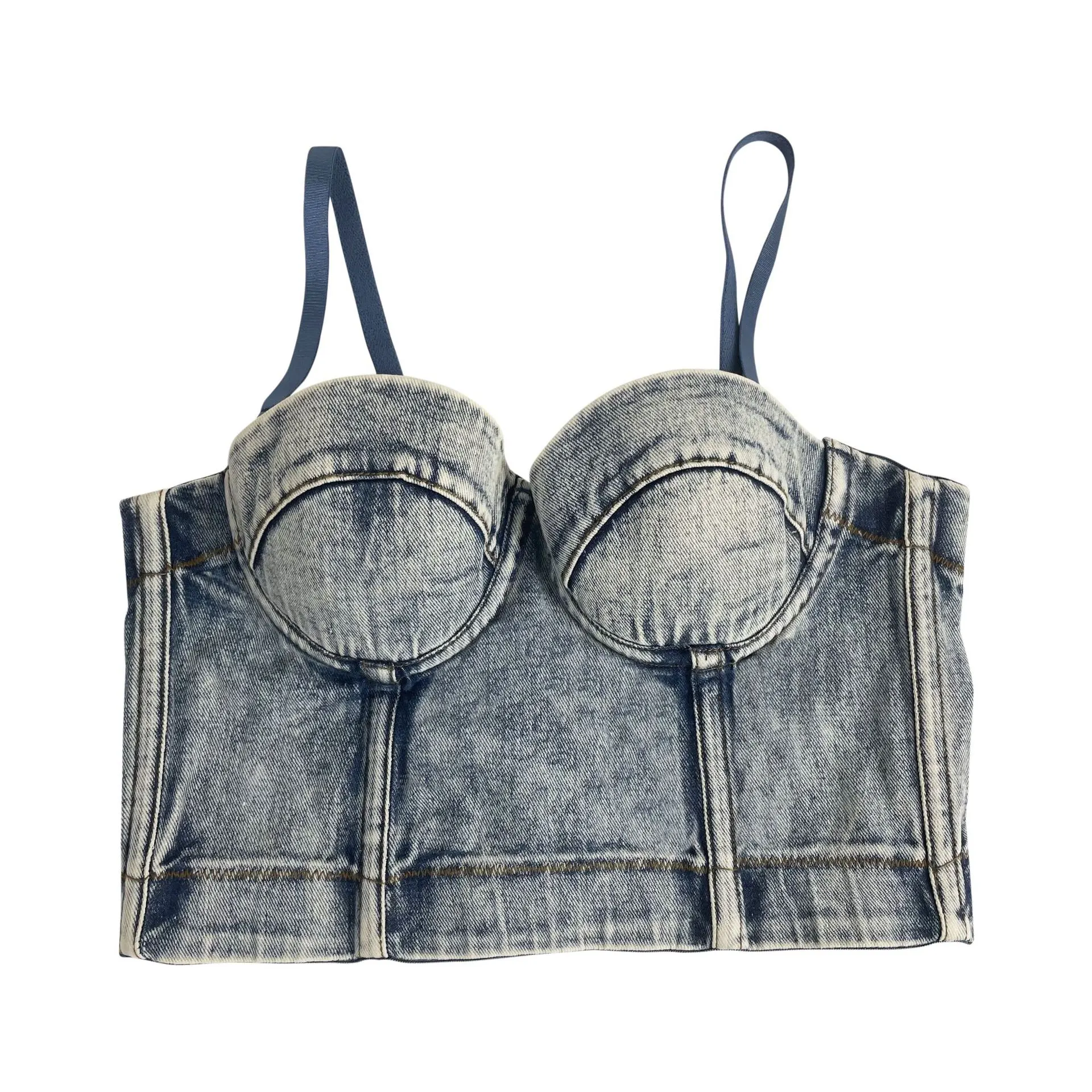 Gray Hanging Dyed Retro Fishbone Denim Camisole -
