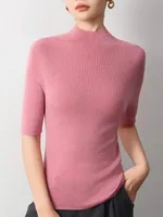Half Turtleneck Bottoming Top High-grade Half Sleeve Sweater - Pink
