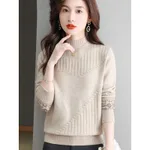 Half Turtleneck Brocade Sweater Loose - Beige