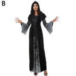 Halloween Skull Print Witch Long Vampire Costume,