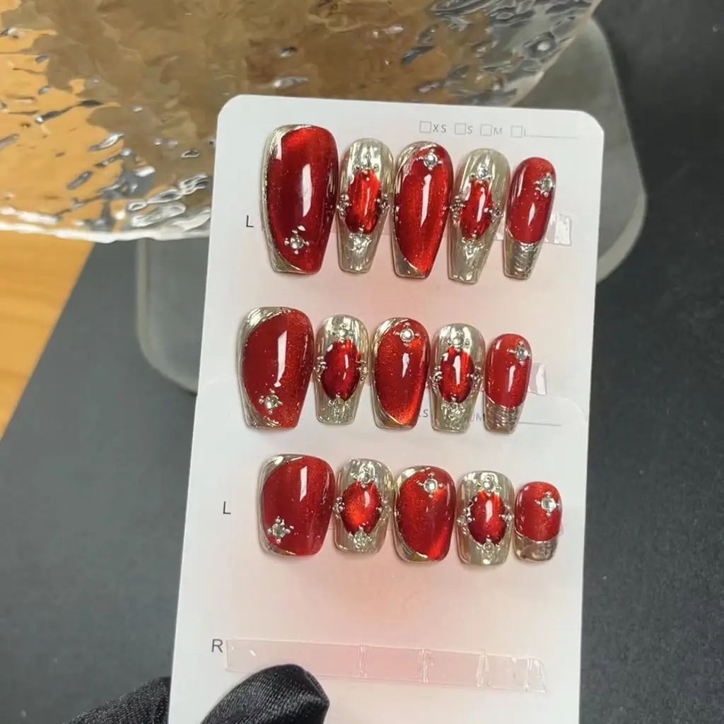 Product information: Style: long ladder buchilati Ruby, short ladder buchilati Ruby, ultra short ladder buchilati Ruby Specifications: XS,S,M,L Style: sweet, French, hot girl, ultra-thin seamless, simple, blush armor Packing list: Nail patches * 10pcs+jelly glue+glue+small wooden stick+file strip+alcohol cotton sheet Product Image: