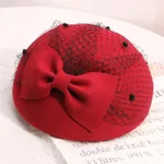 Hat Vintage Woolen Fabric Bowknot - Claret Red