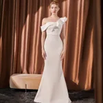 High-end Slant Shoulder Slimming Long Dress - White 18732