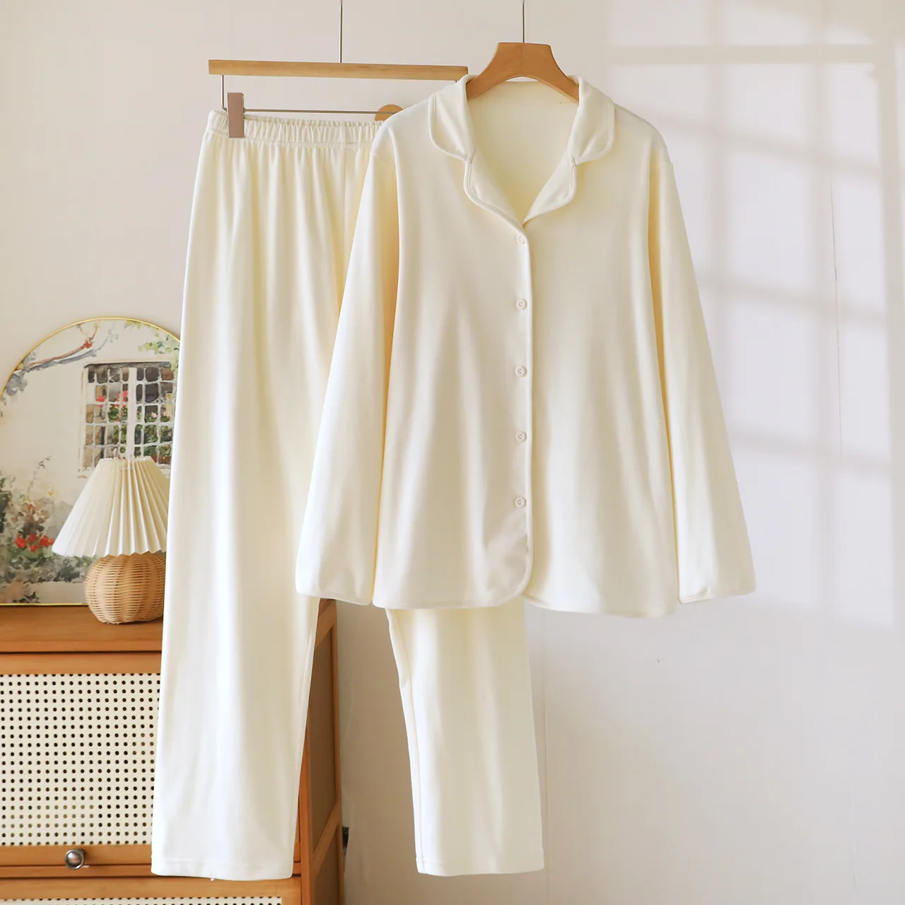 High-grade Thick Loose Long Sleeves Trousers Homewear - 111 Beige