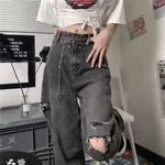 Product information: Material: Denim/Cotton Style: Personality Street/Japan and South Korea Colour: Black grey Size Information: Size: S/M/L/XL Size Lenght waist hip S 100 62 98 M 102 66 102 L 102 70 106 XL 103 74 110 unitcm Note: 1. Asian sizes are 1 to 2 sizes smaller than European and American people. Choose the larger size if your size between two sizes. differences due to . 2. Please check the size chart carefully before you buy the item, if you don't know how to choose size, please contact our customer service. 3.As you know, the different computers display colors differently, the color of the actual item may vary slightly from the following images. Packing list: Jeans*1