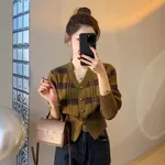 Product information: Color: red, gray, brown Size: free size Version: cinched style Style type: fresh and sweet Style: Cardigan Main fabric composition: Polyester Wearing style: Cardigan Length: Short (40cm Sleeve length: long sleeve Packing list: Sweater * 1 Product Image: