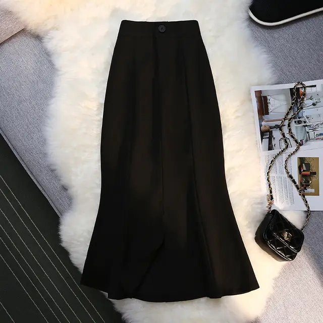 High Waist Mid-length Package Hip A-line Mermaid Skirt Split Skirt -