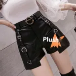 High Waist Slimming All-match Wide Leg Leather Shorts Boot Pants -