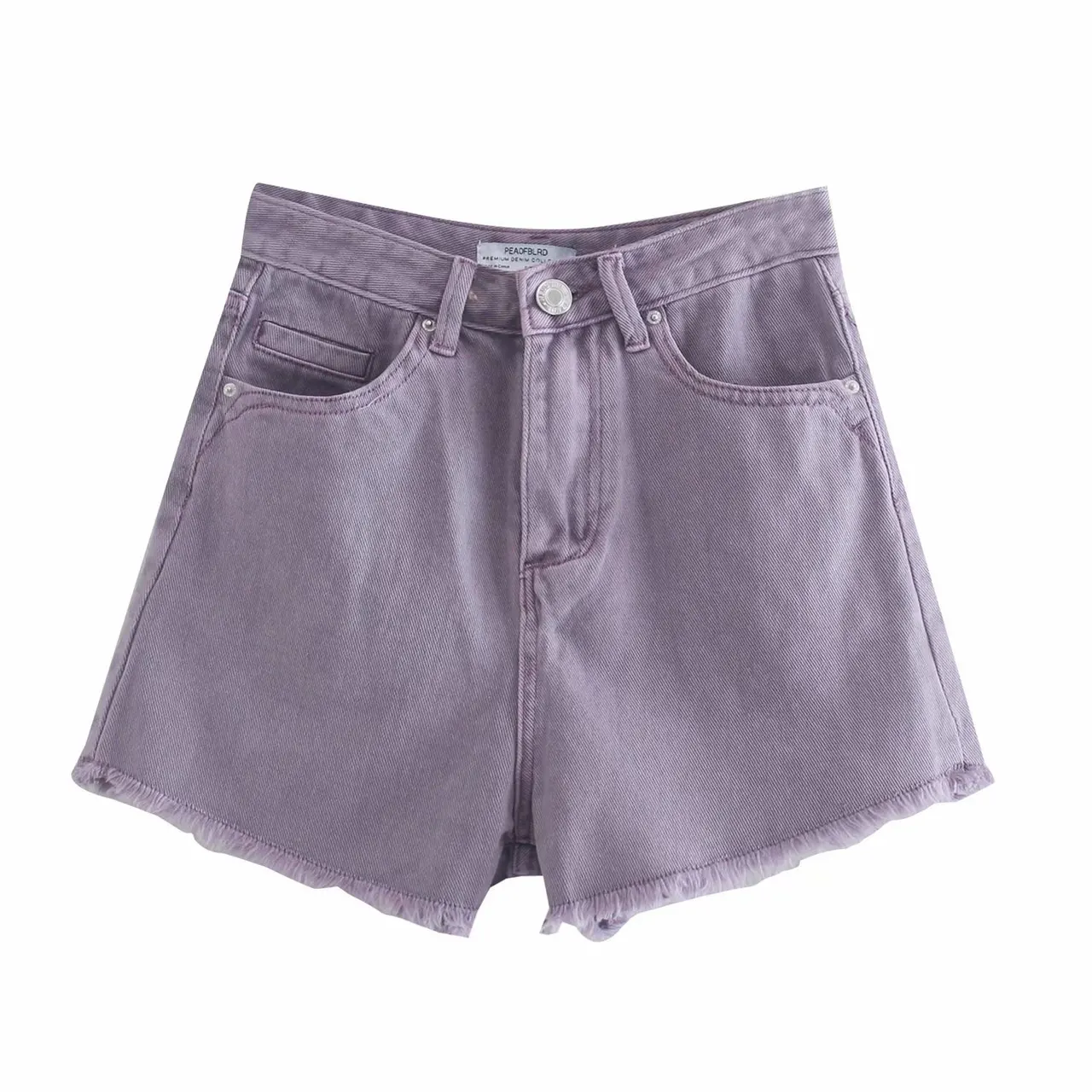 High Waist Temperament Was Thin Button Denim Shorts - Purple