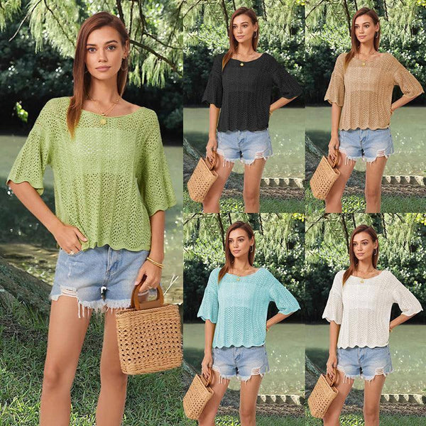 Hollow Fashion Short Sleeve Casual Women's Knitwear