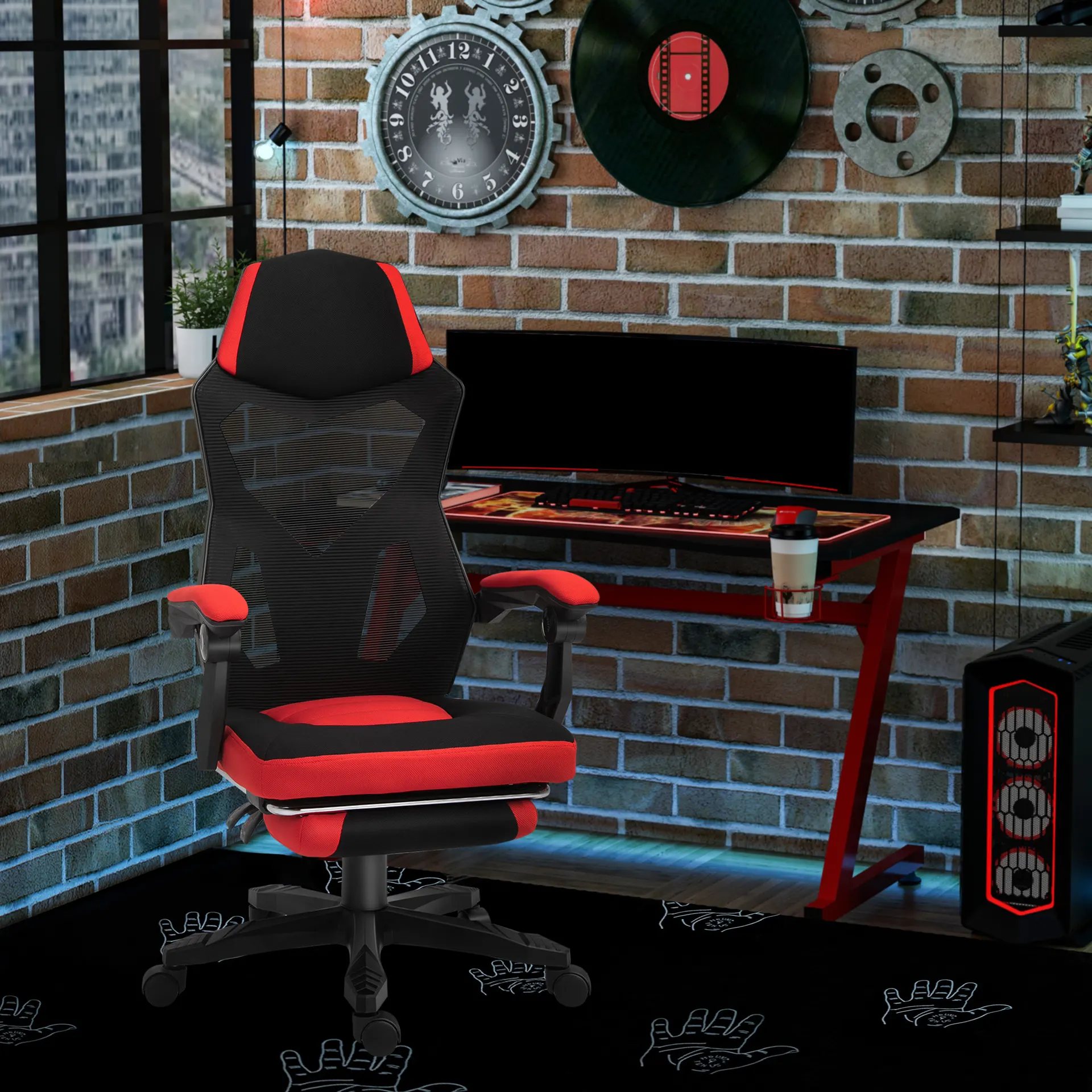 Description : We promise: You won't regret choosing this office chair. Put it in your office, study, or use it around your home. Featuring an ergonomic line design with thick padding and breathable fabric, it provides extra comfort for working over long periods of time. You can adjust the seat height, recline the angle of the back to enjoy a better sitting experience. The swivel wheels enable you to move quickly around the room or office. Features: - Ergonomic line design with thick padding, provides extra comfort - Similar color of black and grey, add fashion style to your room - Mesh back is breathable - Back angle of the office desk chair can be adjusted up to 135 degrees with retractable footrest - Adjustable height can match your desk or your sitting habit - High-end gas lift and wheel, make adjusting height and moving smooth - This modern office chair features swivel wheels ensure easy and quick mobility - Suitable for office, home study, etc. Specification: - Color: Black, Grey - Material: Sponge, Mesh fabric(polyester), Spandex fabric(polyester), PP, Nylon - Max Load: 264lbs - Overall Dimension: 22.75"W x 28.25"D x 42.5"-46.5"H - Reclining Dimension (without footrest): 22.75"W x 35.75"D x 38.25"-42"H - Footrest Size: 13.75" L x 8.25" W - Seat Dimension: 19.25"W x 19.25"D x 16.5"-20.5"H - Armrest Height(to Seat): 7.75" - Back Height(to Seat): 27.25" We promise: You won't regret choosing this executive office chair. Put it in your home office, home study, or use it around working space. Featuring a curved line design with thick padding and breathable fabric, the rolling chair provides extra comfort for working over long periods of time. You can adjust the seat height, and recline the angle of the back to enjoy a better sitting experience. The swivel wheels enable you to move quickly around the room. Features: - Curved line design with thick padding, provides extra comfort - Mesh back is breathable - Back angle of the office desk chair can be adjusted up to 135 degrees with retractable footrest - Adjustable height can match your desk or your sitting habit - High-end gas lift and wheel, make adjusting height and moving smoothly - This modern office chair features swivel wheels to ensure easy and quick mobility - Suitable for home office, home study, etc. Specification: - Color: Black, Red - Material: Sponge, Mesh fabric(polyester), Spandex fabric(polyester), PP, Nylon - Max Load: 264lbs - Overall Dimension: 22.75"W x 24.75"D x 42"-48"H - Reclining Dimension (without footrest): 22.75"W x 35.75"D x 38.25"-42.25"H - Footrest Size: 13.75" L x 8.25" W - Seat Dimension: 19.25"W x 19.25"D x 16.5"-20.5"H - Armrest Height(to Seat): 7.75" - Back Height(to Seat): 27.25" Package Includes: 1 x Office Chair, 1 x Manual.