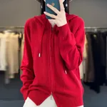 Hoodie Knitted Zipper Thickening Coat - Cherry Red