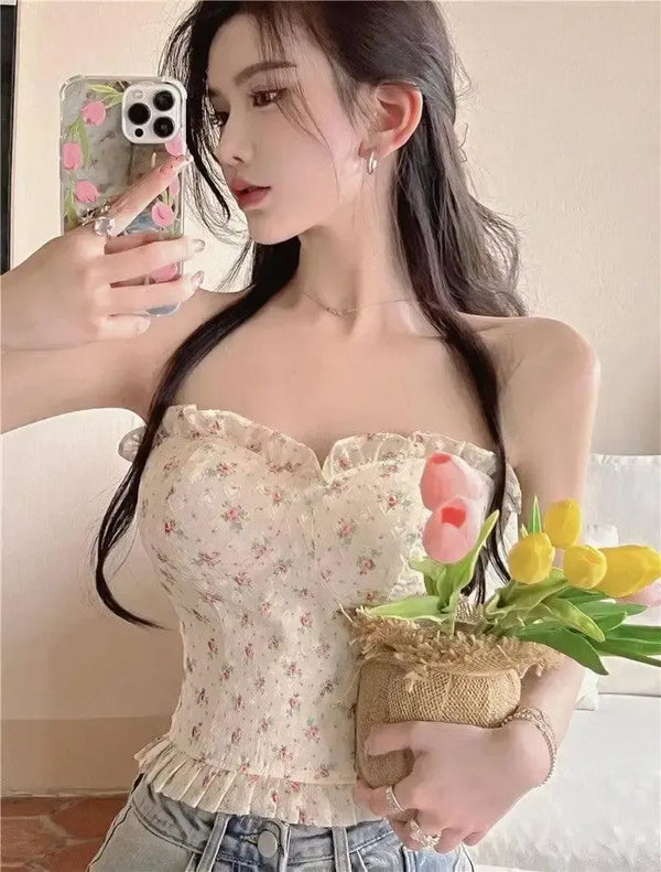 Hot Girl Floral Lingerie Tube Top Female Fishbone