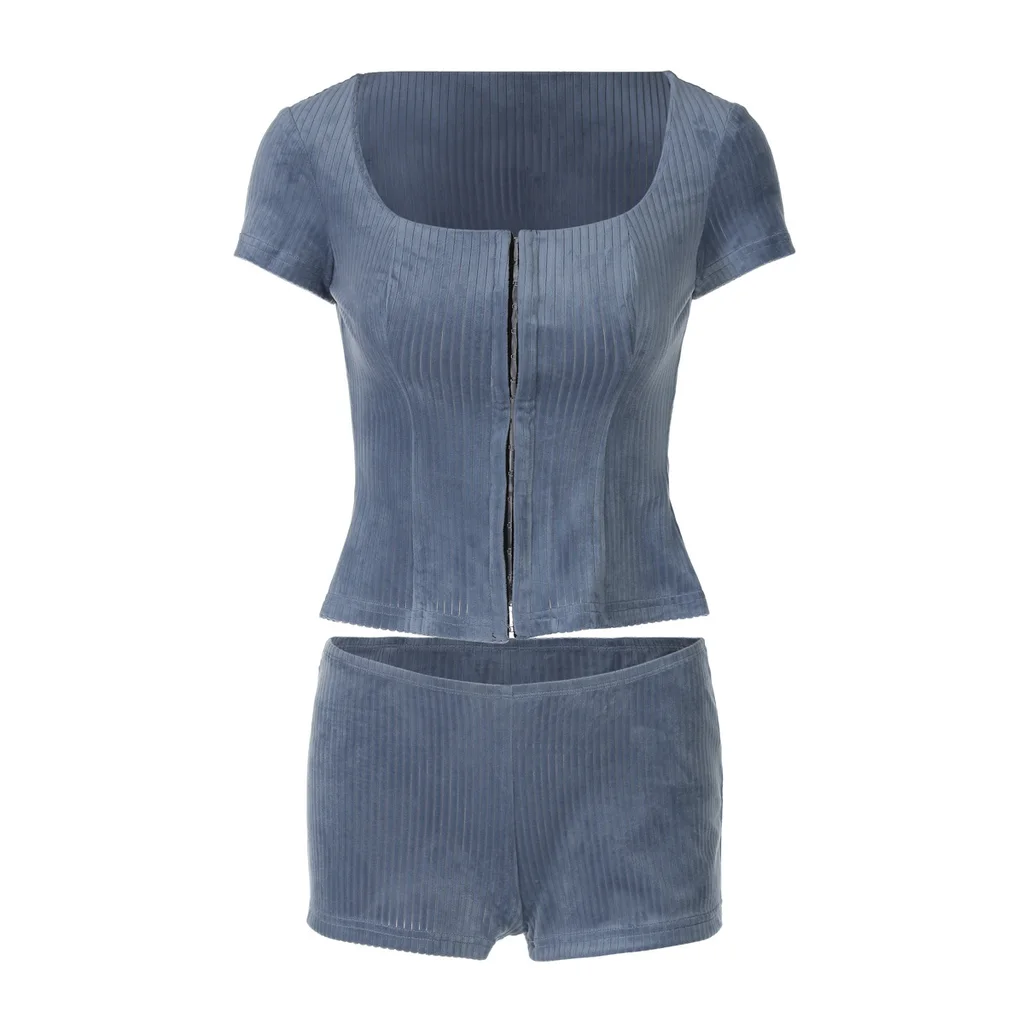 Product information: Pattern: solid color Color: blue, khaki, maximum weight of plus size: 0.2, fabric composition: 90% polyester, 10% spandex, ready-made goods welcome to place an order Pants length: Shorts Size: S,M,L Style type: Street hipster Popular elements: exposed navel Fabric name: Polyester Sleeve type: regular sleeve Main fabric composition: Polyester (polyester fiber) Applicable Gender: Female Sleeve length: long sleeve Style: European and American style Process: Composite Size: Note: 1. Asian sizes are 1 to 2 sizes smaller than European and American people. Choose the larger size if your size between two sizes. differences due to . 2. Please check the size chart carefully before you buy the item, if you don't know how to choose size, please contact our customer service. 3.As you know, the different computers display colors differently, the color of the actual item may vary slightly from the following images. Packing list: Top +Shorts*1 Product Image: