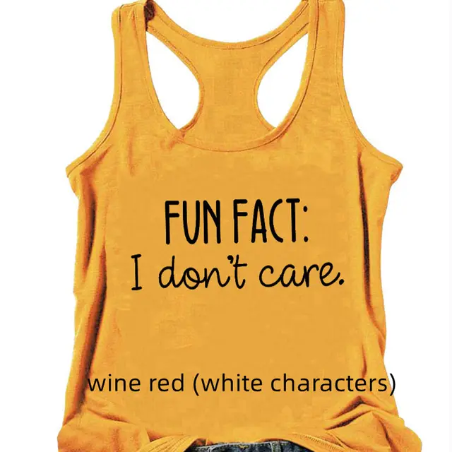 Product information: Fabric name: cotton Pattern: Print Style: Hedging Sleeve length: short sleeve Version: Slim fit Collar type: round neck Color: blue (white characters), wine red (white characters), yellow (black characters), black (white characters), white (black characters), gray (white characters) Size Information: Size: S, M, L, XL SizeUnitcm S M L XL Bust 92 96 102 108 Foot circumference 108 112 118 124 Length 63 64 65 66 Note: 1. Asian sizes are 1 to 2 sizes smaller than European and American people. Choose the larger size if your size between two sizes. differences due to . 2. Please check the size chart carefully before you buy the item, if you don't know how to choose size, please contact our customer service. 3.As you know, the different computers display colors differently, the color of the actual item may vary slightly from the following images. Packing list: Vest*1 Product Image: