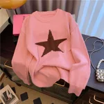 Idle Style Five-pointed Star Crew Neck Pullover Sweater - Pink