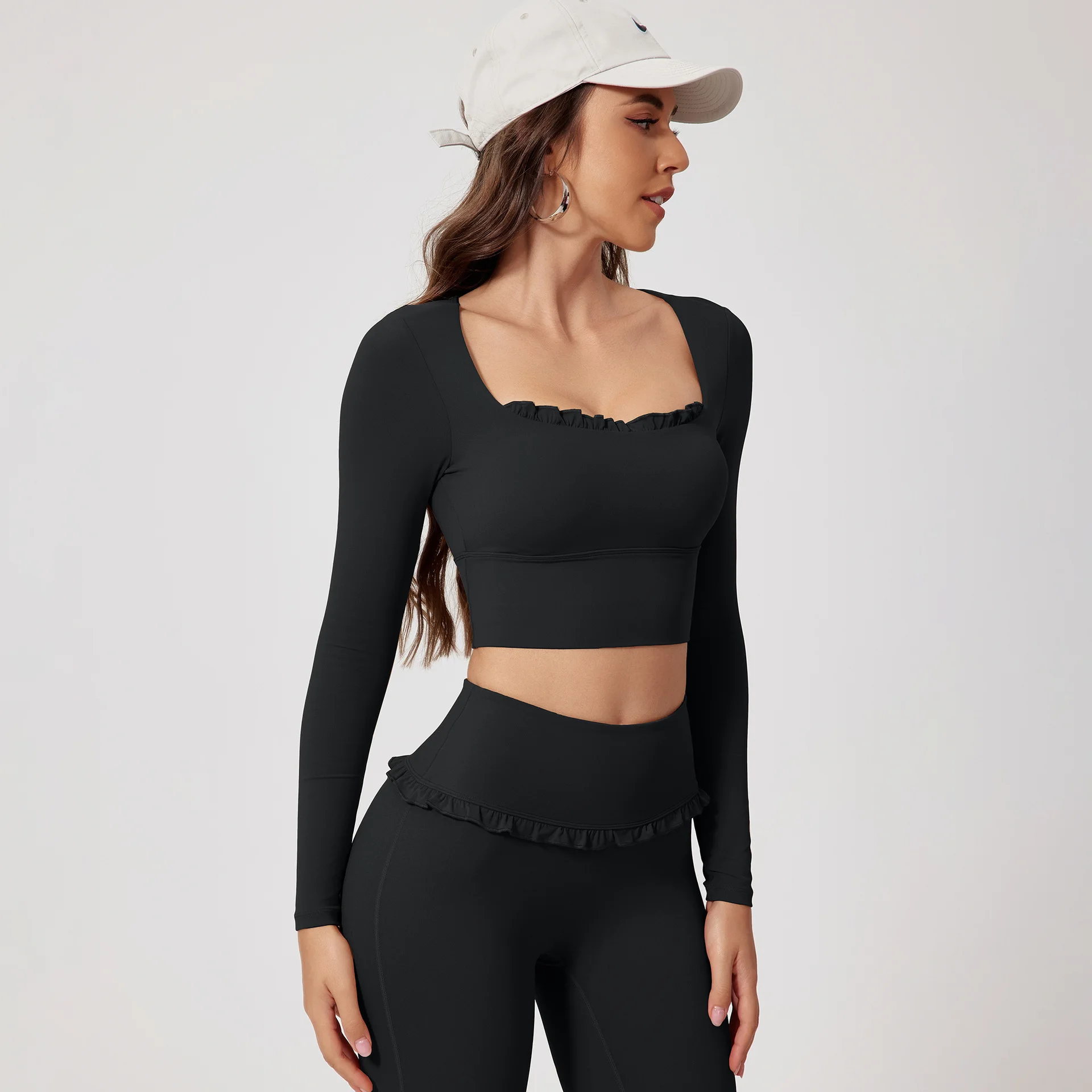 Inch Shadow And Quick-drying Fitness Sports Long-sleeved Top - Black